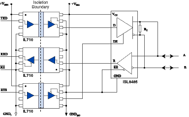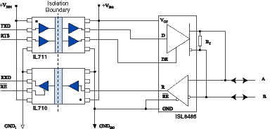 NVE offers a broad line of single-chip isolated RS-422, RS-485, and PROFIBUS transceivers. IsoLoop logic isolators can also be used as part of multi-chip designs to isolate signals using particular non-isolated transceivers.