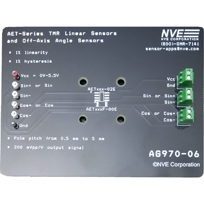 An evaluation kit is available for the AET-Series sensors. NVE also offers a linear magnetic scale demonstration featuring the AET500-02E sensor.